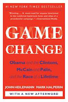 A few weekends ago, I was in the middle of recovering from a bad virus. I’d been stuck at home, feeling miserable, for several days. I’d watched hours and hours of Gossip Girl on Netflix, and my brain was feeling sluggish and spongey. I couldn’t take another minute in front of the idiot box. That was my frame of mind when I wandered over to my bookshelf and picked up a copy of this book, which my grandfather had given me a few weeks before: Game Change, by John Heilemann and Mark Halperin.